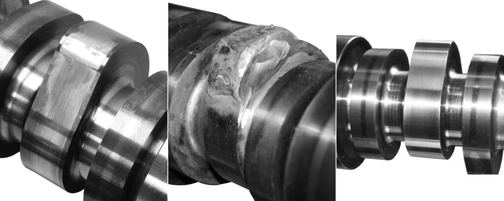 Krzywka wałka rozrządu przed, w trakcie i po regeneracji.